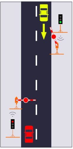 Reduces motorists’ waiting time; for example, by extending the “GREEN “period in case of no queuing vehicles on the “RED” side.